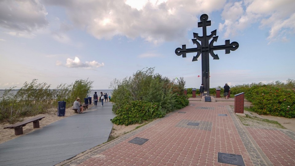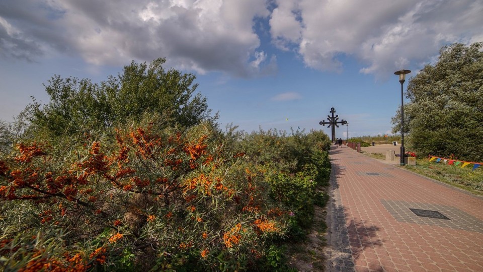 Na końcu alei stoi Krzyż Morski, którego ramiona stanowią kotwice, poświęcony Ofiarom Morza.