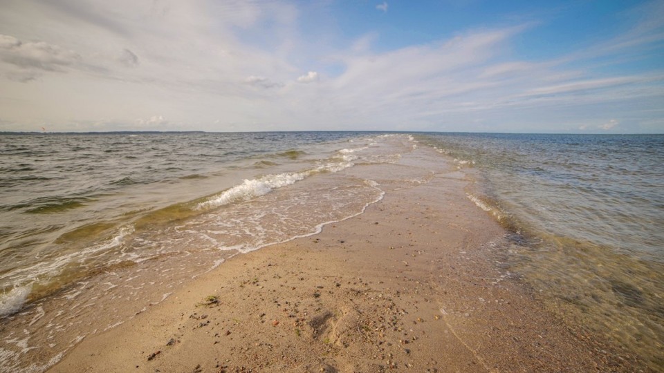 Wody zatoki Puckiej (poza dwoma głębiami) są wyjątkowo płytkie, ciekawostka jest częściowo podwodna mierzeja przebiegająca od rewy do Kuźnicy. Od strony Rewy fragment wystający z wody liczy ok. 1 km długości. Pozostała część chowa się pod wodą, biegnąc prawie w prostej linii aż do Kuźnicy położonej na Półwyspie Helskim.