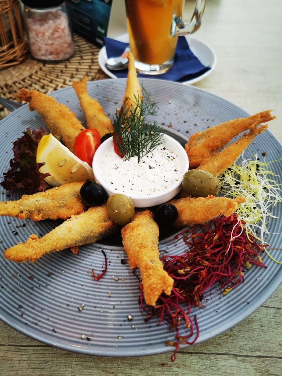 świeże, smażone rybki nad samym morzem.